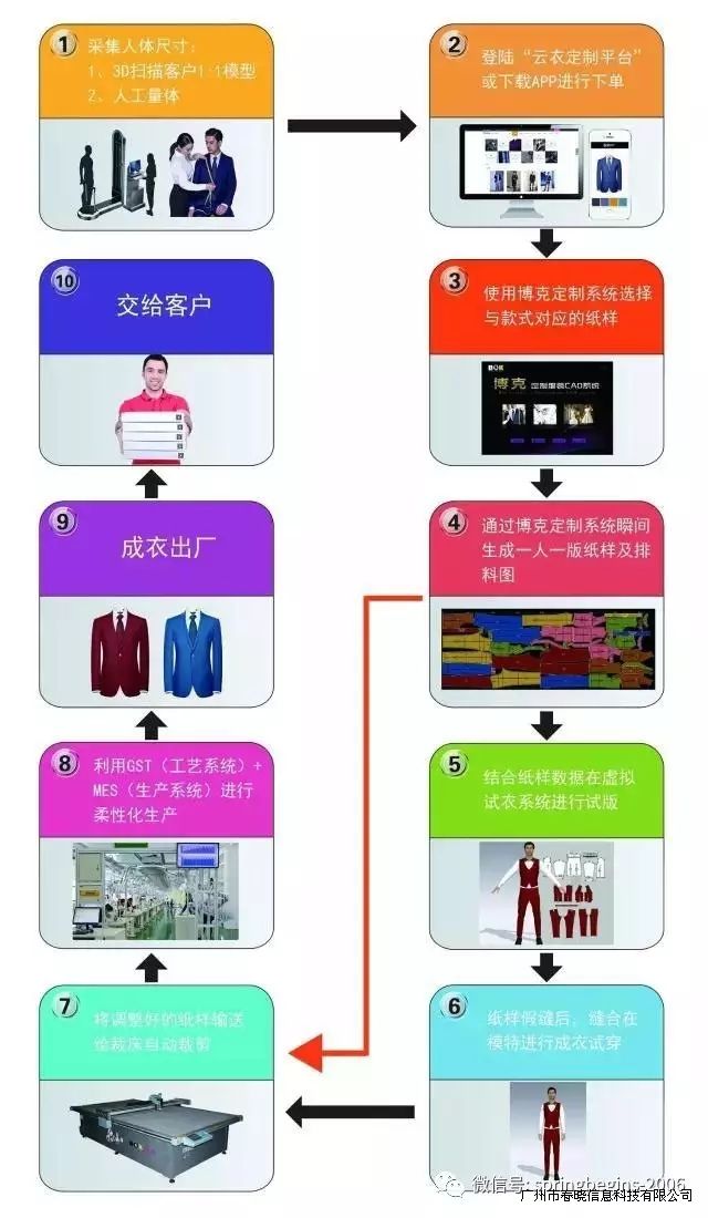 GST系统上承C2M平台,下接MES系统。通过人工智能技术与互联网的结合,让传统服装定制焕以新生。这一系列的智能技术集成在一起,即形成完整的整体解决方案,实现大规模的服装定制。